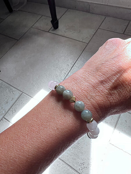 Chaque Bracelet Quartz Rose et Labradorite Étreinte Astrale™ est assemblé à la main dans notre atelier situé en Provence, au pied des Alpilles.